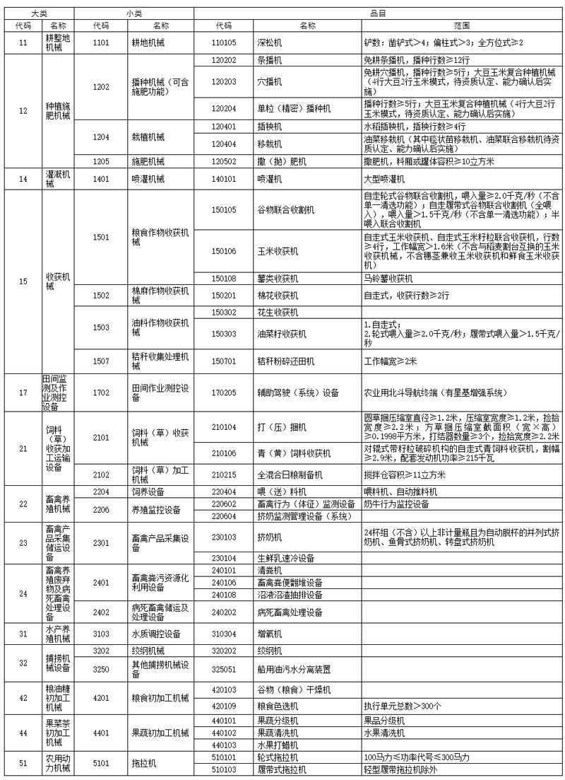 *此处代码对应《农业机械分类》(NY/T1640-2021)中的分类代码。