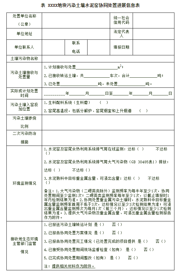 以上(2)、(3)项,需提供环境影响评价文件关键页(含污染土壤类别、处置量,水泥窑窑型、规模与烟气除尘设备,贮存、预处理、输送、投加等设施改造情况或依托情况等)及其批复作为支撑,或提供处置单位具备上述条件的其他充足材料。