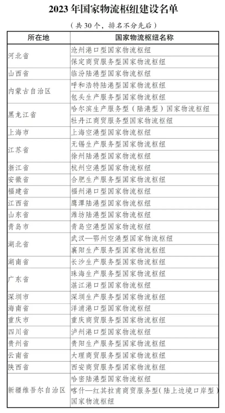 为深入贯彻党的二十大精神,落实“十四五”规划《纲要》和《“十四五”现代物流发展规划》等有关工作部署,近日国家发展改革委研究确定并正式发布2023年国家物流枢纽建设名单,沧州港口型等30个国家物流枢纽入选。此次纳入年度建设名单的30个枢纽具有三方面显著特点: