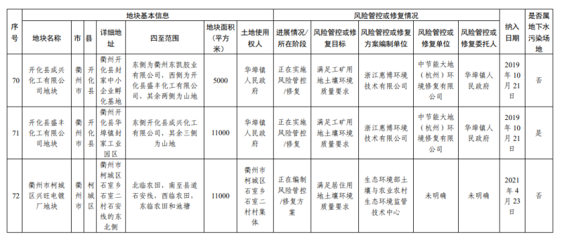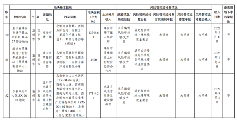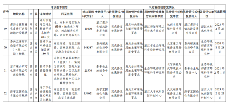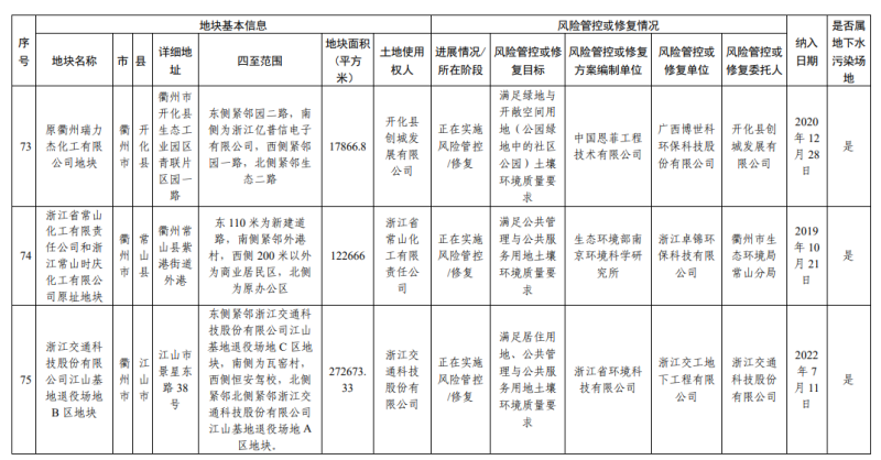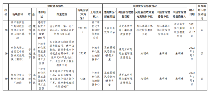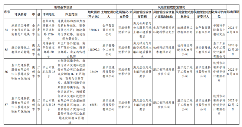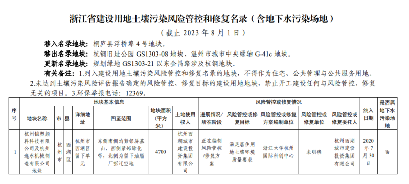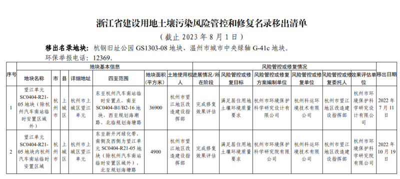 浙江省建设用地土壤污染风险管控和修复名录(含地下水污染场地)与浙江省建设用地土壤污染风险管控和修复名录移出清单已于2023年8月1日更新,详见附件。