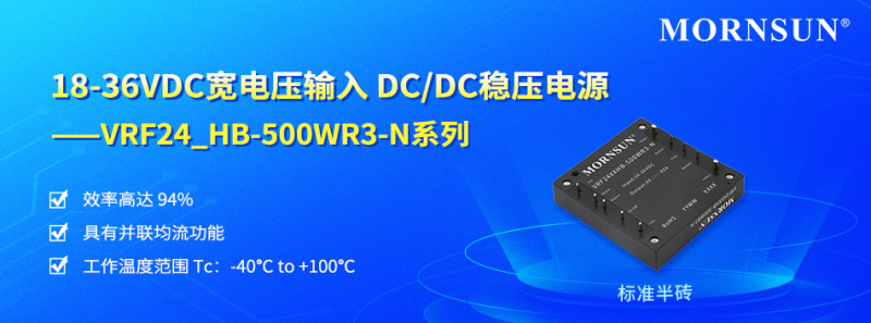 VRF24_HB-500WR3-N系列产品采用国际标准的1/2砖式封装,效率高达94%,同时具备超宽的工作温度范围、高隔离电压、支持并联均流,具有全面保护功能等特点。该系列还具有品质承诺,服务保障与技术支持,以其高可靠性及综合性能为客户提供更优选择。