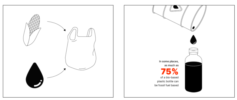 欧洲冲浪者基金会发布的报告《塑料虚假:落入生物塑料陷阱》中提出,在某些情况下,塑料只需 20% 为生物基即可满足认证要求,因此大多数生物基塑料实则还混合有化石燃料基材料,在一些条件下化石燃料材料甚至可占产品的 75%。这些由混合材料以及纯生物基聚合物制成的塑料在化学和功能上通常与传统塑料相同。
