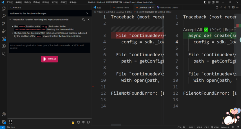 随着 GPT4 的出现,AI 编程正在迈入新的台阶。 近期一个名为“Continue”的开源项目爆火出圈,它是一个 VS Code 扩展,能够让 ChatGPT 在你的 IDE 中运行,为开发者编程提供了极大便利。