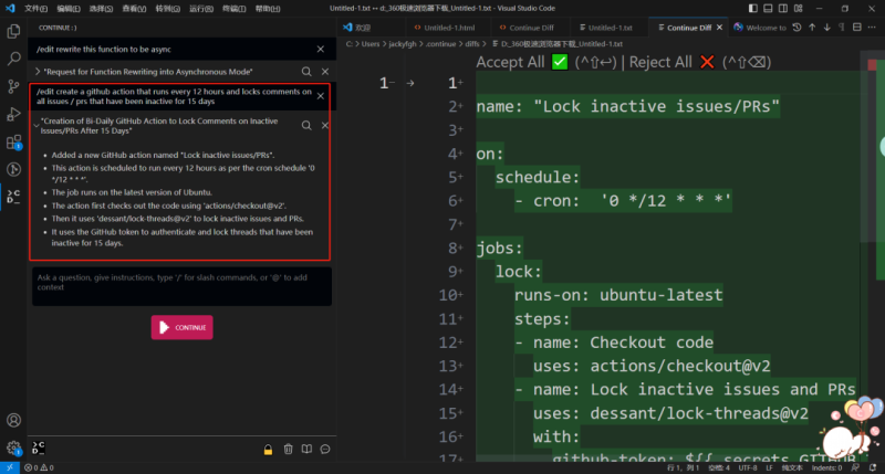 你还可以给 Continue 一个自然语言命令,它就会按照你的要求编写或修改代码。