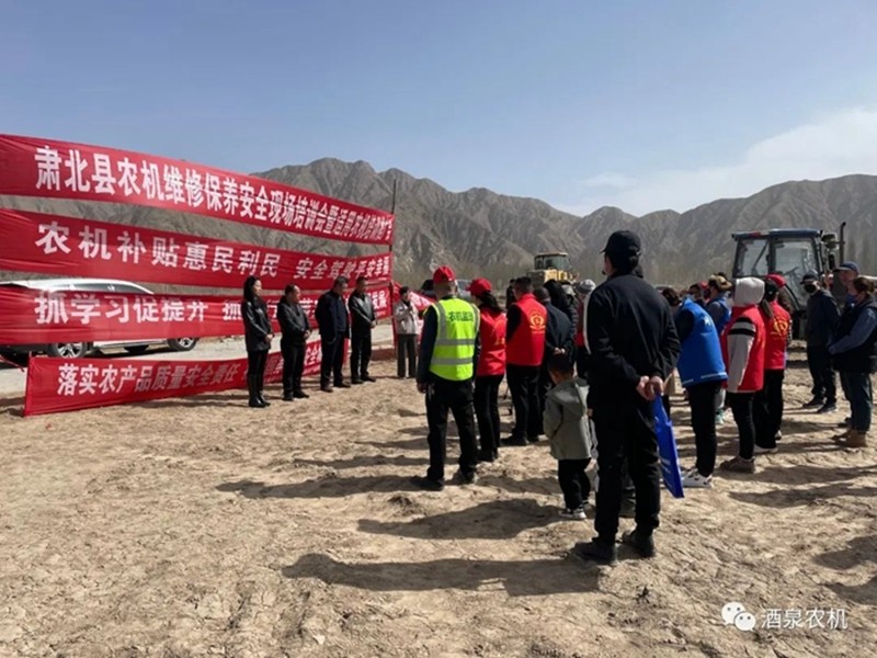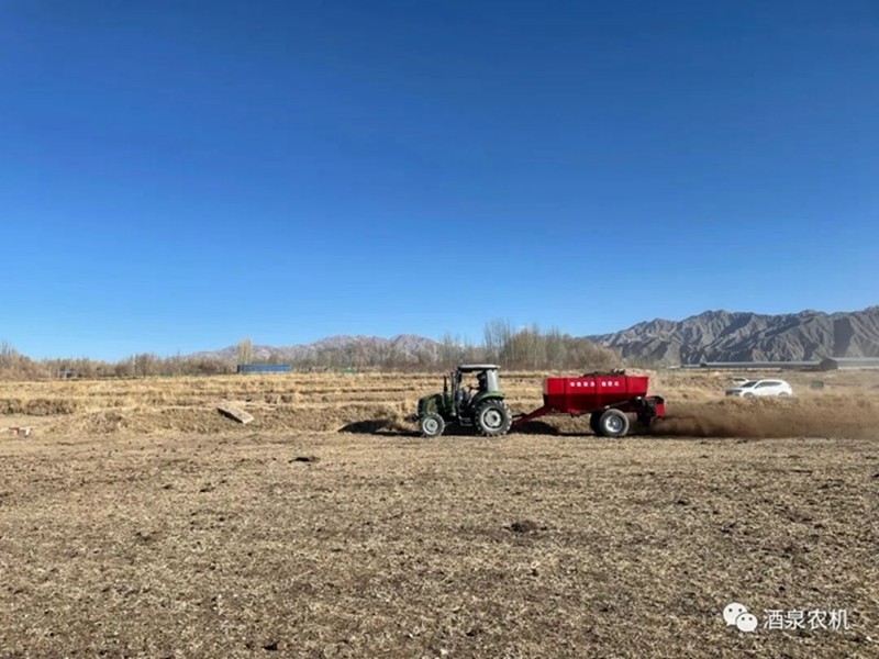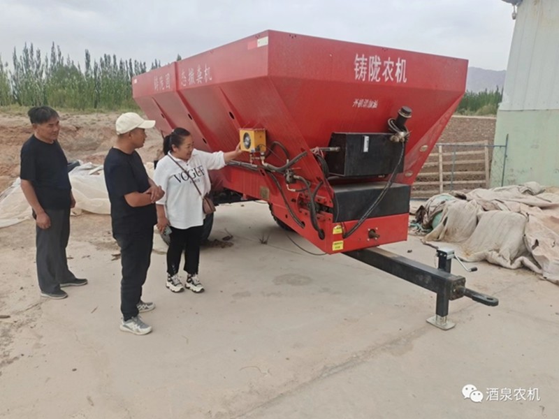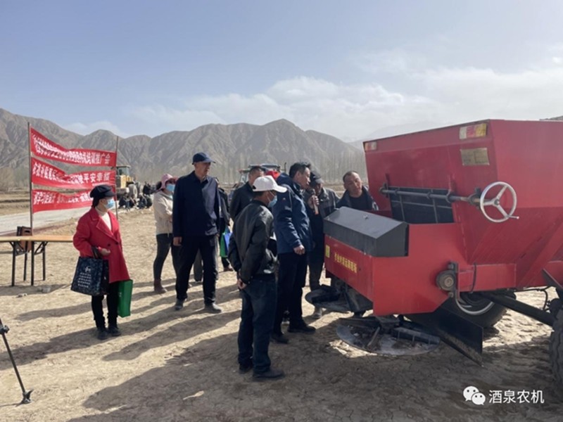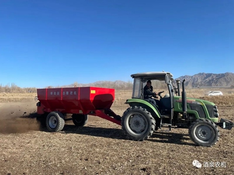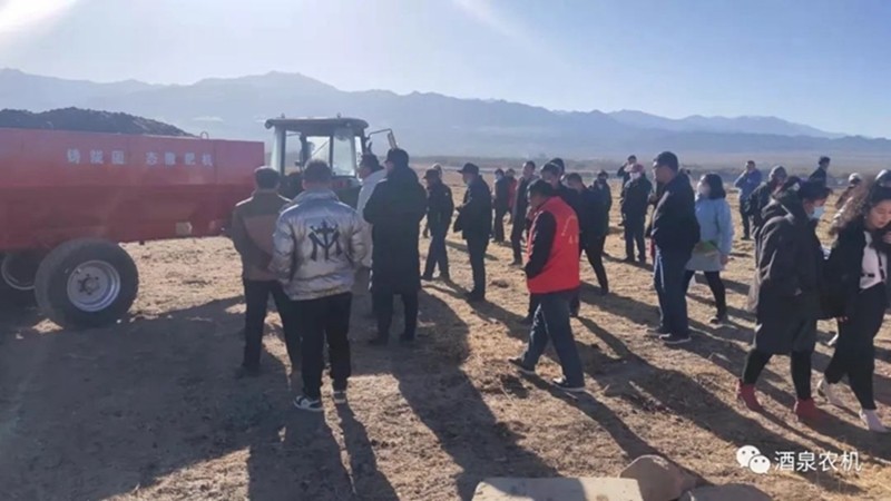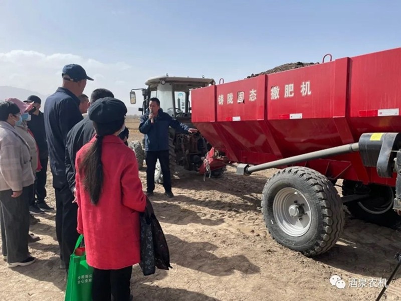 2021年,肃北县在酒泉市农机服务中心的支持下, 承担畜禽粪污综合利用装备抓点示范项目,支持睿凌养殖农民专业合作社购置2FGH-5撒肥机1台,开展固态肥料施撒示范作业。2FGH-5撒肥机与带后动力装置的四轮拖拉机配套作业,主要适宜于耕前撒施底肥,耕后播种前草场、牧场的种肥撒播作业,具有机构紧凑合理、使用调整方便、生产效率高,可有效减少用工量,减轻劳动强度、使用范围广泛等特点。肃北县农机服务中心在城北村召开粪污利用还田装备抓点示范现场作业演示培训会,专业技术人员详细讲解了粪污利用还田装备操作规范,并进行撒粪机现场作业演示,参加本次培训会人员有各乡镇农业综合服务站工作人员、各村负责人、县农机合作社、种植大户共计53人。