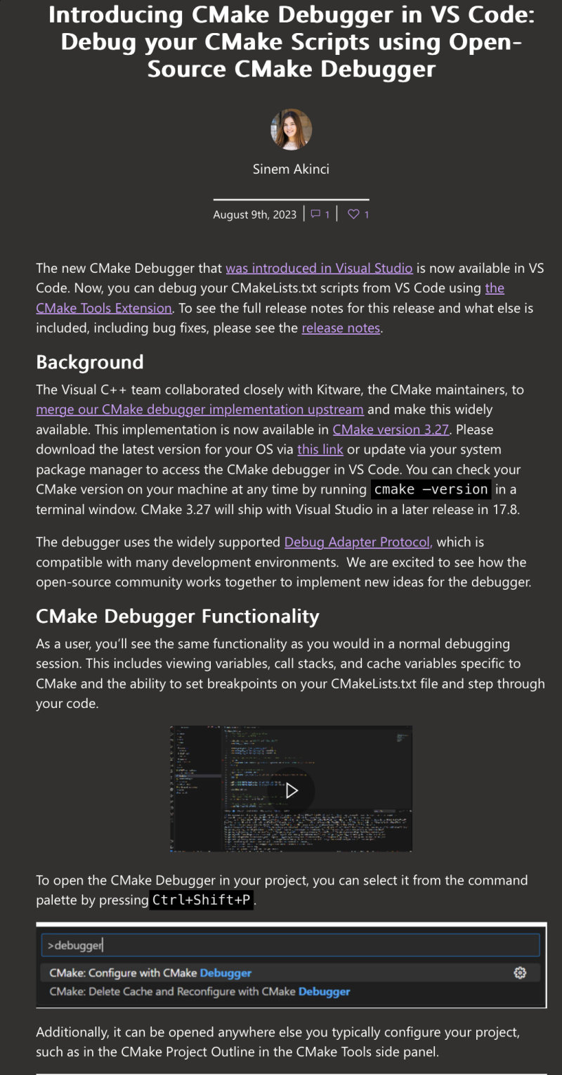 据悉,由于新的 CMake 合并了微软的 CMake 调试器(CMake Debugger),因此原本在 Visual Studio 才能使用的 CMake 调试器,现在 VS Code 用户也可以使用。