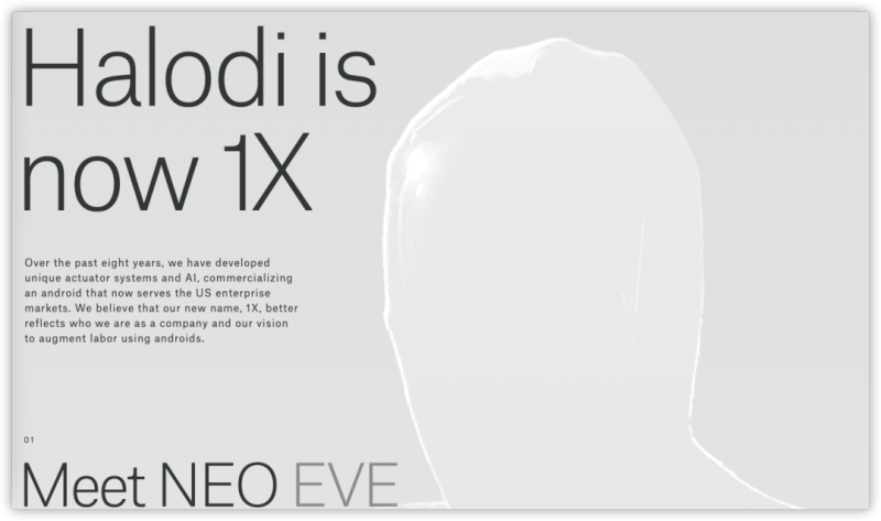 2023年3月6日,Halodi Robotics宣布更名为1X,1X的名字暗示了公司的成长和对未来的愿景,反映了团队在机器人技术方面的独特能力。首席执行官Bernt Øyvind Børnich进一步阐述了这一愿景,他说:“我们的机器人最终将与人类一起工作,一个接一个。与其他必须放慢速度才能发挥功能的机器人不同,1X的模型以1X的速度工作。我们很高兴能开启这一新篇章,我们期待着在我们的新品牌下继续提供行业领先的产品和服务。”