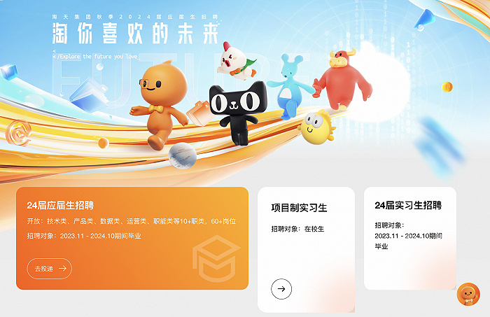 淘天集团招聘官网显示,即日起,集团面向2023年11月至2024年10月期间毕业的海内外应届毕业生,开放超过60种职位,包括算法、工程技术、数据、运营、产品、市场拓展、设计等,工作地分布在杭州、北京、上海、南京、广州,宁波等城市。