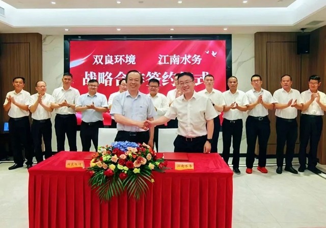 2023年8月7日,江苏江南水务股份有限公司与江苏双良环境科技有限公司签署战略合作协议,开启双方深层次合作新篇章。江南水务党委书记、董事长华锋,党委副书记、总经理池永,党委副书记高立,党委委员、副总经理曾武,双良集团党委书记、副总裁、双良环境总经理缪志强,双良集团副总裁、双良环境营销副总经理蒋少军,技术副总许亮及双方相关部门负责人出席签约仪式并见证签约。