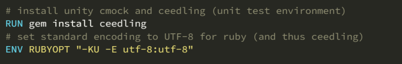 在构建者镜像的第一步中,我们已经安装了ruby,所以,安装单元测试工具变得更加简单: