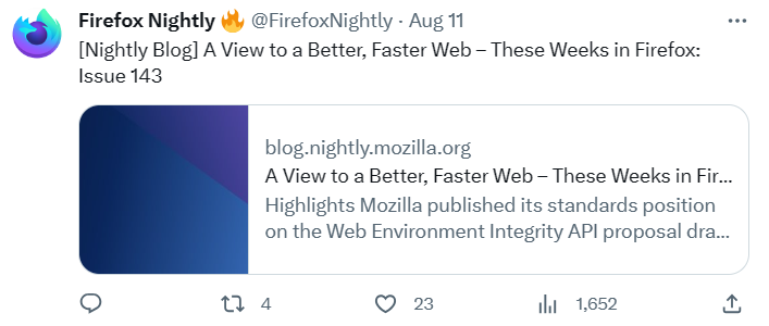 3.https://blog.nightly.mozilla.org/2023/08/10/a-view-to-a-better-faster-web-these-weeks-in-firefox-issue-143/