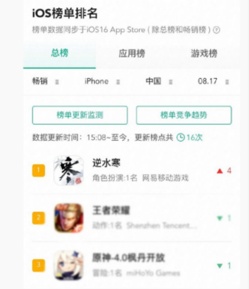 昨天,逆水寒手游更新了一条抽奖微博。抽奖的原因是自己超越了原神和王者荣耀,登顶IOS下载榜总榜。