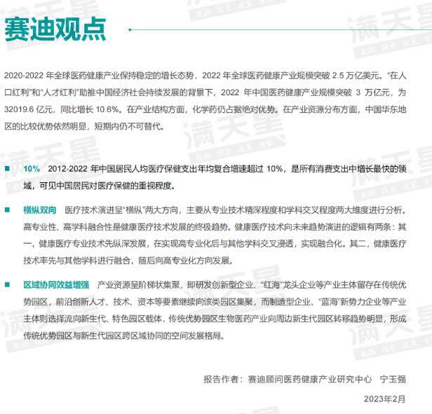 近年来,全球医药健康产业保持稳定的增长态势,2022年全球医药健康产业规模突破2.5万亿美元。在“人口红利”和“人才红利”助推中国经济社会持续发展的背景下,2022年中国医药健康产业规模突破3万亿元,同比增长10.6%。在产业结构方面,化学药仍占据绝对优势。在产业资源分布方面,中国华东地区的比较优势依然明显,短期内仍不可替代。随着民众健康意识的不断提升,医疗保健支出持续增加等多重因素叠加,预计到2025年中国医药健康产业规模有望突破4.6万亿元。