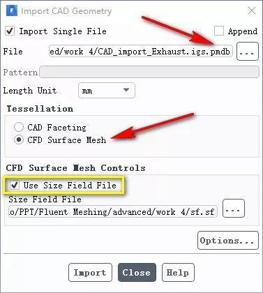 tep 3 按照CFD Surface Mesh的方法重新读入*.pmdb文件,并包含*.sf的尺寸分布