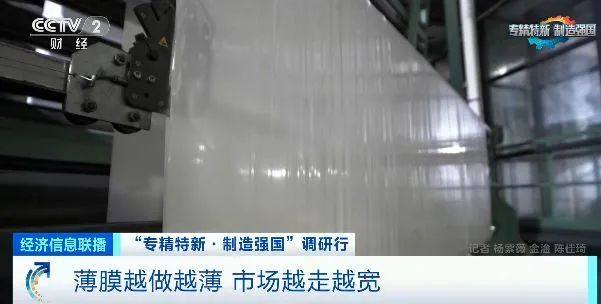 在另一家专精特新企业,厂房前,工人们正在打包当天刚下产线的产品。这是一种厚度仅有几微米的薄膜,企业每天生产量约150吨,产品展开可达1000万平方米,可铺满1400个足球场。