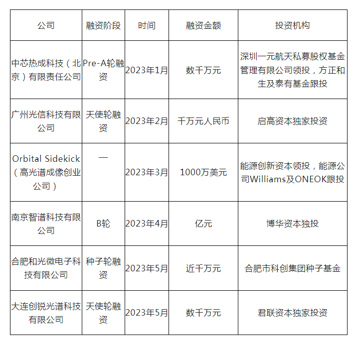 为了了解当前光谱技术及市场新动向,据仪器信息网根据网络关键词搜索(光谱企业融资等)的不完全统计,2023年上半年,光谱领域在高光谱成像、红外成像芯片、光谱视觉技术、超表面光学技术等方面得到资本助力,相关企业获得了种子轮、天使轮、Pre-A轮、B轮等融资进一步体现了这些光谱技术极大的市场潜力。