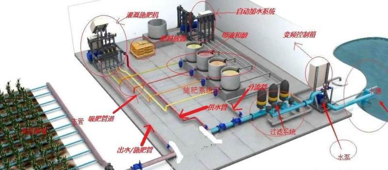 水肥一体化技术是将灌溉与施肥融为一体的农业新技术。水肥一体化是借助压力系统(或地形自然落差),将可溶性固体或液体肥料,按土壤养分含量和作物种类的需肥规律和特点,配兑成的肥液与灌溉水一起。通过可控管道系统供水、供肥,使水肥相融后,通过管道和滴头形成滴灌、均匀、定时、定量,浸润作物根系发育生长区域,使主要根系土壤始终保持疏松和适宜的含水量,同时根据不同的作物的需肥特点,土壤环境和养分含量状况;作物不同生长期需水,需肥规律情况进行不同生育期的需求设计,把水分、养分定时定量,按比例直接提供给作物。