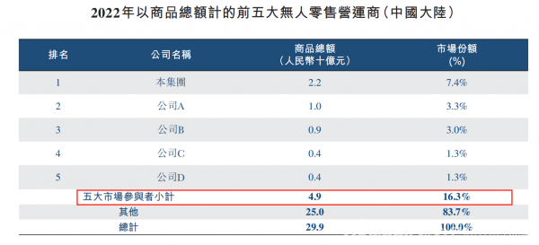 在行业春天已过的情形下,整个无人零售行业还在变得越来越拥挤。招股说明书显示,2022年中国大陆前五名的无人零售运营商合计仅占据16.3%的市场份额,行业集中度很低。