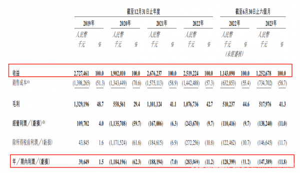 招股说明书显示,2019-2022年四个完整财年以及2023年上半年,友宝在线整体的营业收入分别为27.27亿 、19.02亿、26.76亿、25.19亿和12.53亿元人民币,整体处于一个波动下滑的趋势。