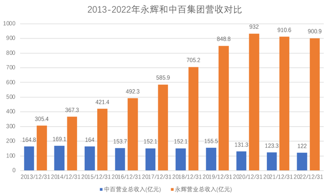 但中百集团却因永辉超市的“介入”而打乱了自身经营节奏,逐步陷入发展困境,并从2013年开始整体营收持续下滑。