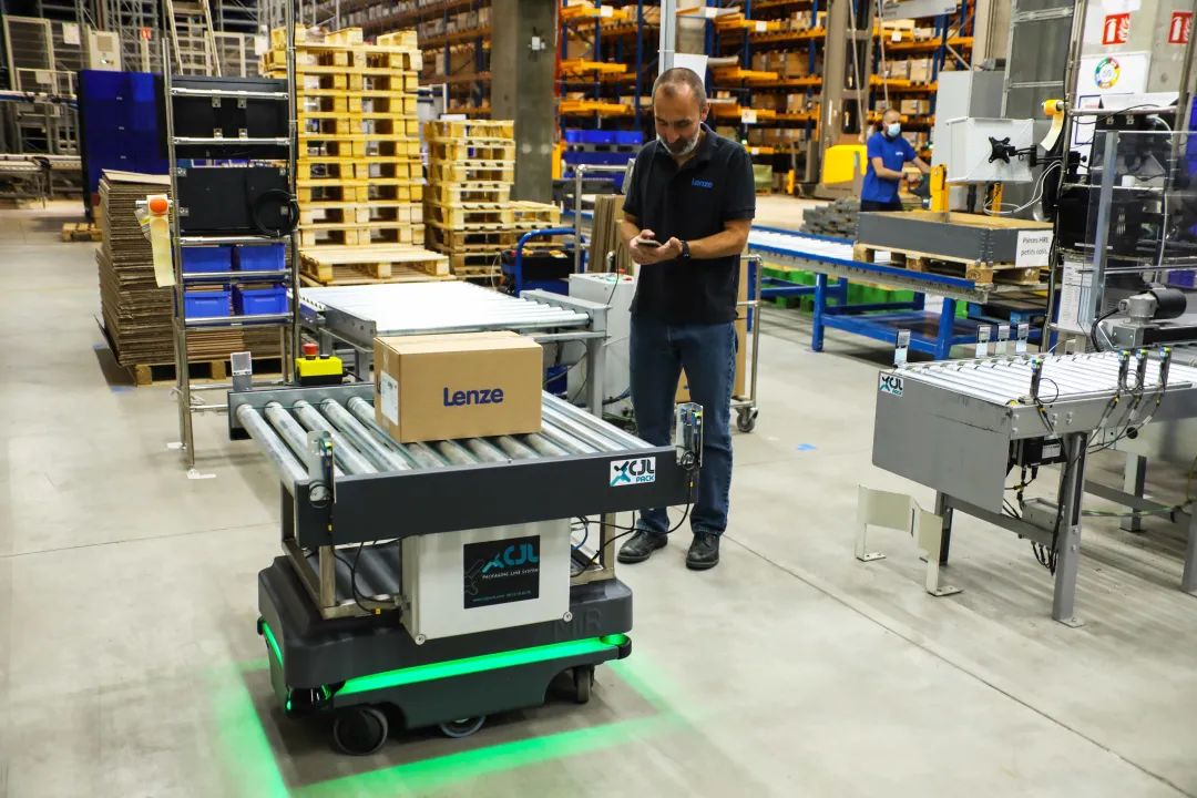 这个任务落到了配备电动传送装置的机器人 AMR MiR200 肩上。为了这个项目,Lenze 公司联手了集成商 CJL Pack 以及分运商 HMI-MBS。从起草规范到安装调试,该解决方案用了一年时间落地。