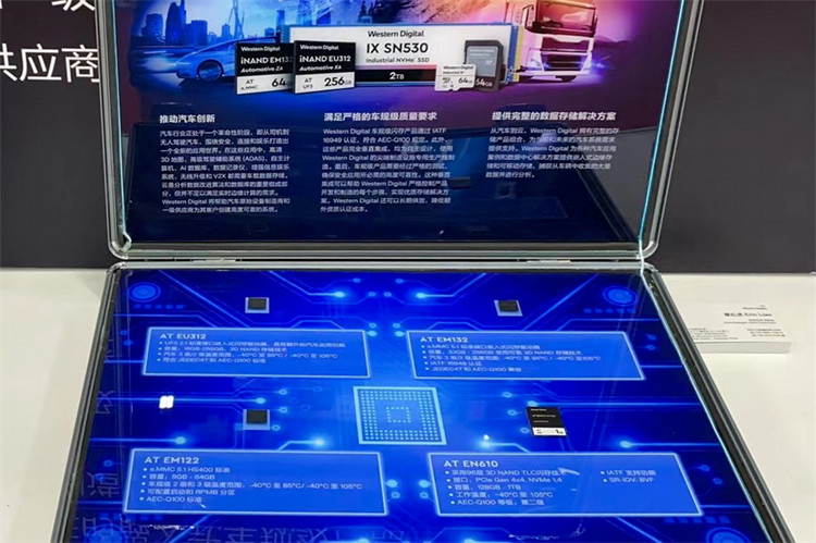 除了上述产品,西部数据还展示了NAND AT EM132、iNAND AT EU312 UFS、iNAND AT EM122 e.MMC嵌入式闪存盘多款车规级高级存储解决方案,以及针对智慧视频领域的存储解决方案WD Purple Pro HDD。