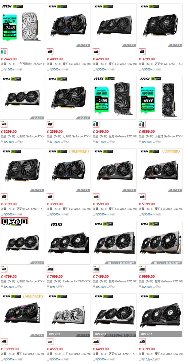 截至IT之家发稿,目前微星显卡在京东商城基本都保持住了首发时的定价,也有部分型号略微降价,例如白色万图师 GeForce RTX 4060 目前 2449 元在售,魔龙 RTX 4060 Ti 4099 元在售中。