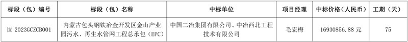 内蒙古包头钢铁冶金开发区金山产业园工业污水处理厂建设及再生水资源化利用项目(EPC)中标候选人公示