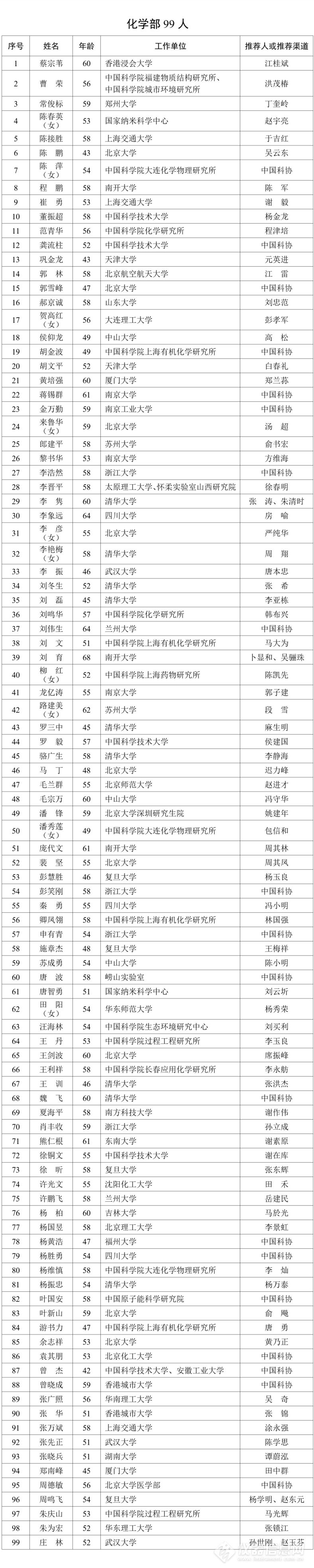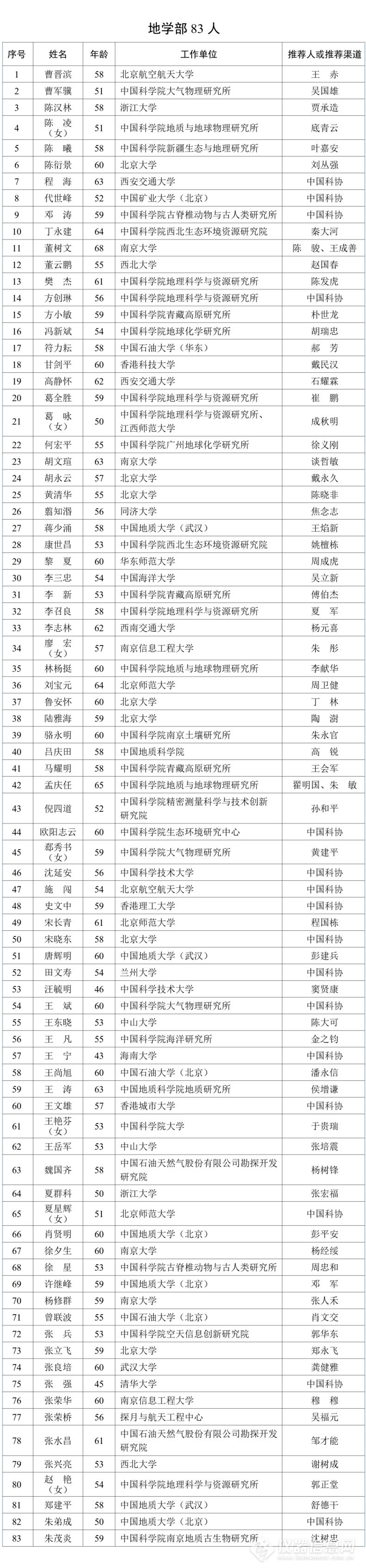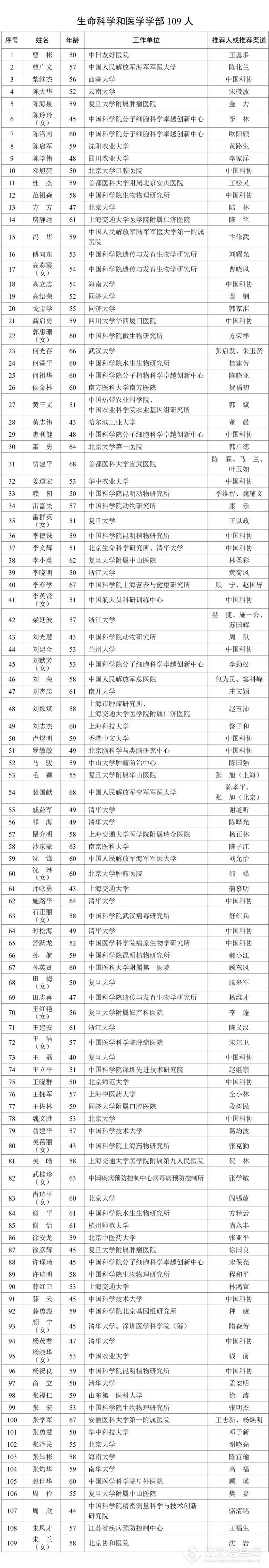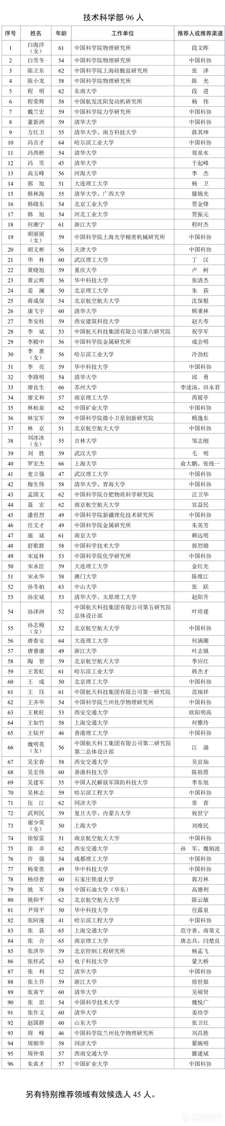 序号 | 姓名 | 出生年月 | 工作单位 | 提名人/提名渠道 |