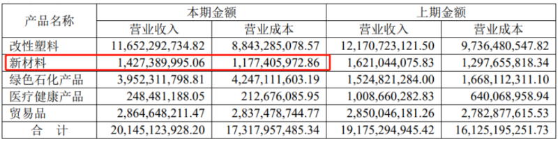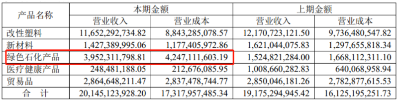 上半年,金发科技绿色石化产品销量58.29万吨,营业收入39.52亿元,营业成本42.47亿元,毛利润亏损2.95亿元。