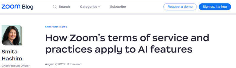 SFC表示:“在广泛的抵制和负面报道之后,Zoom修改了他们的服务条款,表示他们不会使用任何用户参与Zoom会议的数据来训练他们的模型。”
