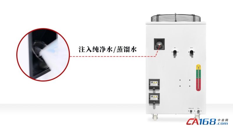 3. 定期更换冷却水。如果冷水机在冬季添加了防冻液,当季节变换后,工作环境温度升高后,需要清洗整个水循环系统并将冷却水更换为蒸馏水或纯净水,避免残留防冻液影响设备使用。冷却水一般间隔3个月更换一次,并需要清洗干净管道杂质或残留物体,保持水循环系统畅通。