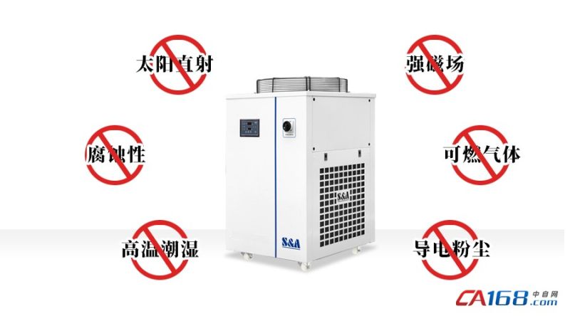 4. 注意冷凝水的影响。夏季高温湿润,当冷水机所在环境温度较高,并且环境湿度较大时,水温低于环境温度时,循环水管与被冷却元件表面可能会产生冷凝水。冷凝水容易造成设备内部电路板短路、严重的甚至会烧坏冷水机核心部件,影响生产进度。建议根据环境温度以及参考激光器使用要求适当调高设定水温。