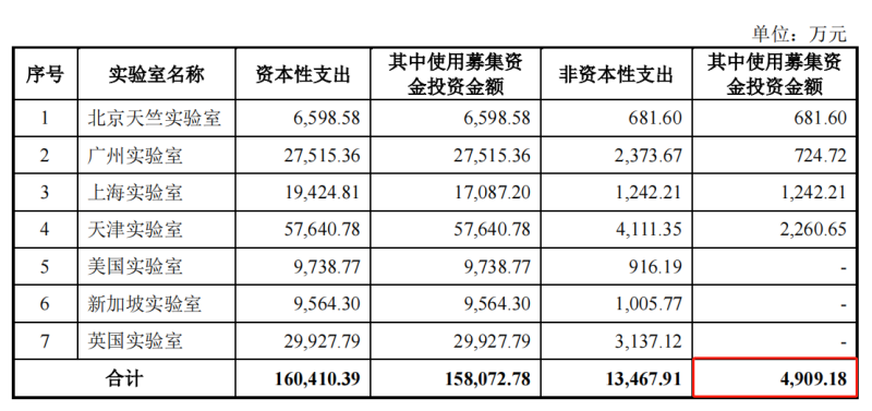 总体来看,本次募投的7个实验室子项目的内部收益率均在30%以上,最低为美国实验室项目38.88%,最高为广州实验室项目56.81%。