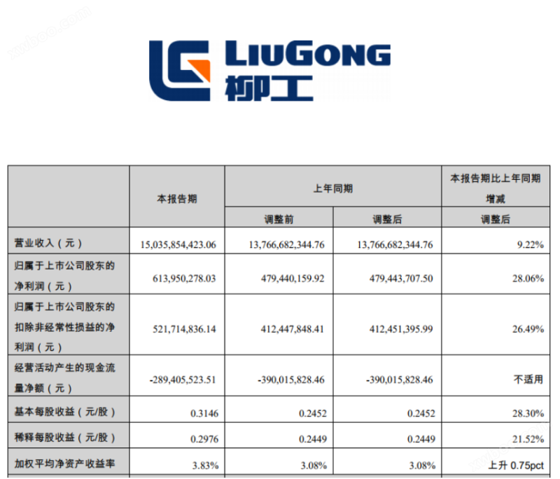 近期,广西柳工机械股份有限公司(柳工 000528)发布2023年半年度报告。报告显示:上半年实现营业收入约150.36亿元,同比增加9.22%;归属于上市公司股东的净利润约6.14亿元,同比增加28.06%。