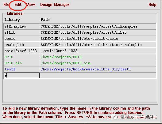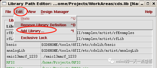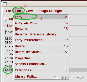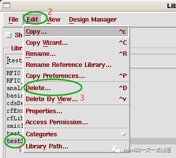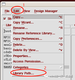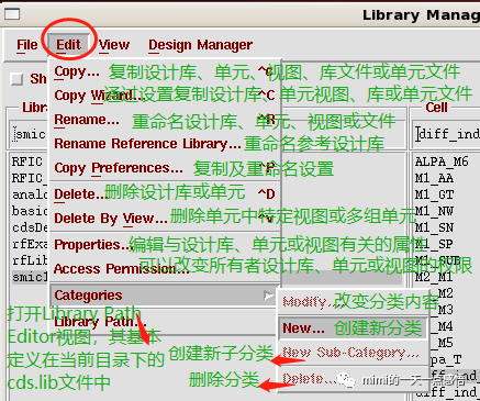 Edit 菜单:用于复制、重命名、删除设计库、单元及视图,改变设计库、单元及视图的属性和权限,编辑设计库链接路径等。