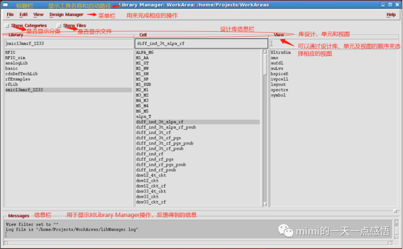 Library Manager:库管理器。它主要用于项目中库(Library)、单元(Cell)及视图(View)的创建、添加、复制、删除和组织,其主要功能如下: