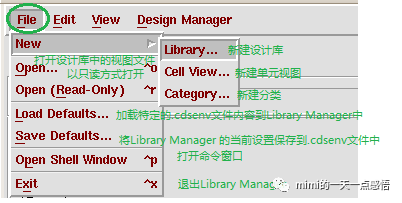 3、Library Manager基本操作(包括:A、创建新设计库;B、创建新单元视图;C、打开单元原理图视图;D、复制设计库;E、删除设计库;F、重命名设计库;G查找单元视图;H、Library Path editor)