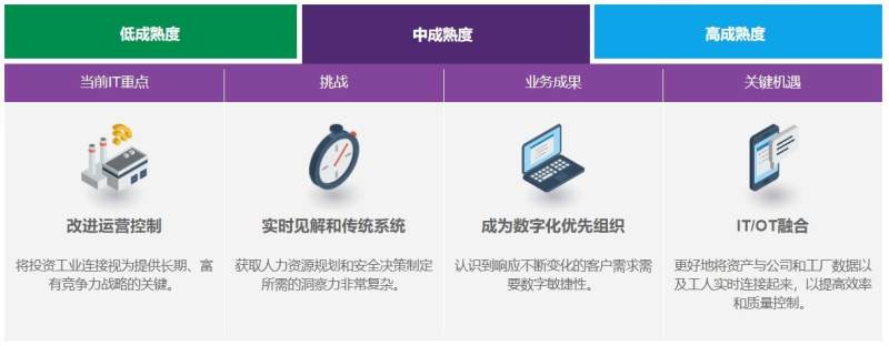 ● 中成熟度公司在提高网络可靠性和保护工业数据方面更有信心。然而,他们仍在寻找成为数字化优先组织的方法。