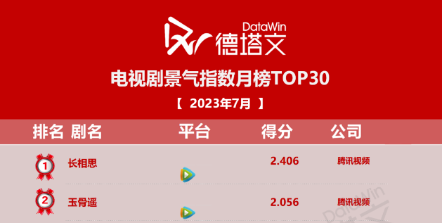值得一提的是,《长相思 第一季》《玉骨遥》包揽了德塔文7月月榜的冠亚军,且是当月景气指数唯独破2的两部古装剧。敏锐捕捉大众更迭的审美,用与时俱进思维并整合优质资源打造精品古装剧,凸显了腾讯视频在常规赛道树立强竞争力的决心。