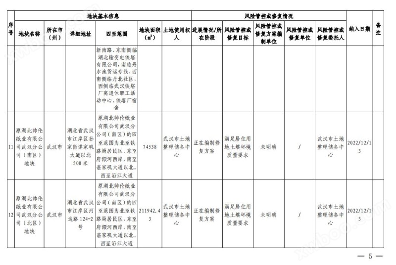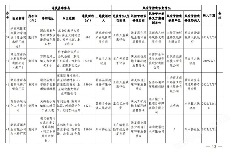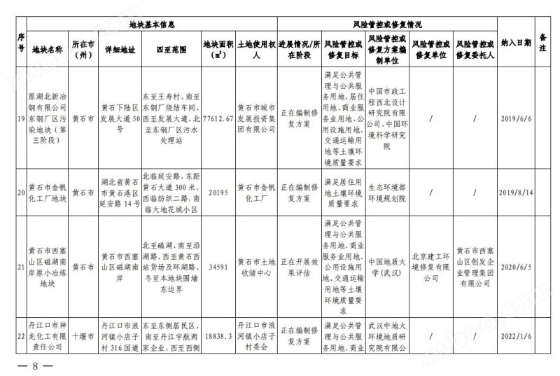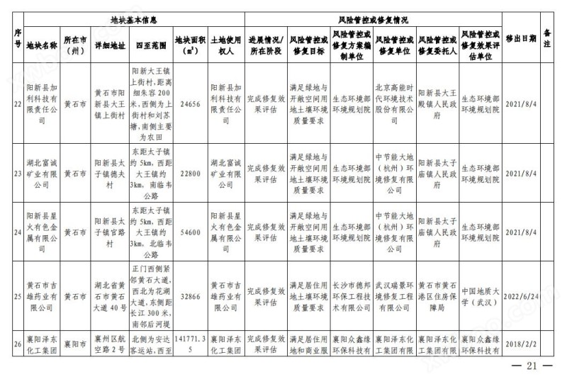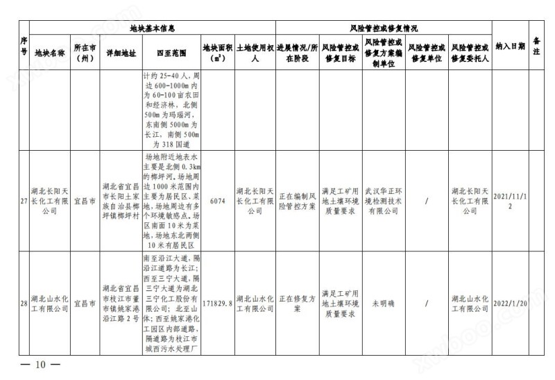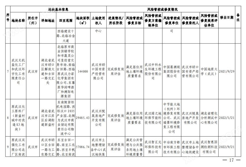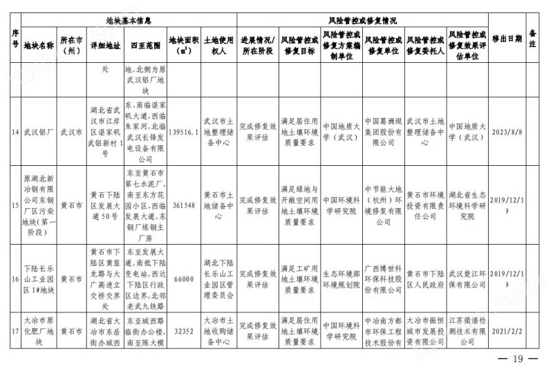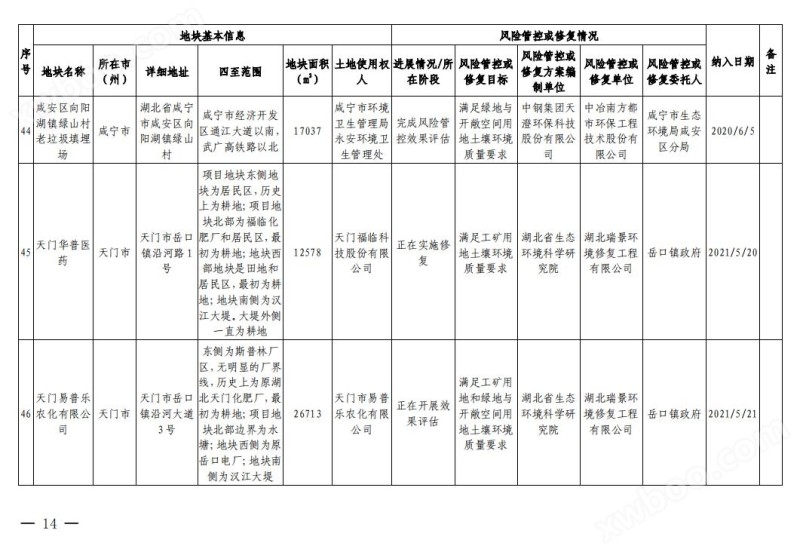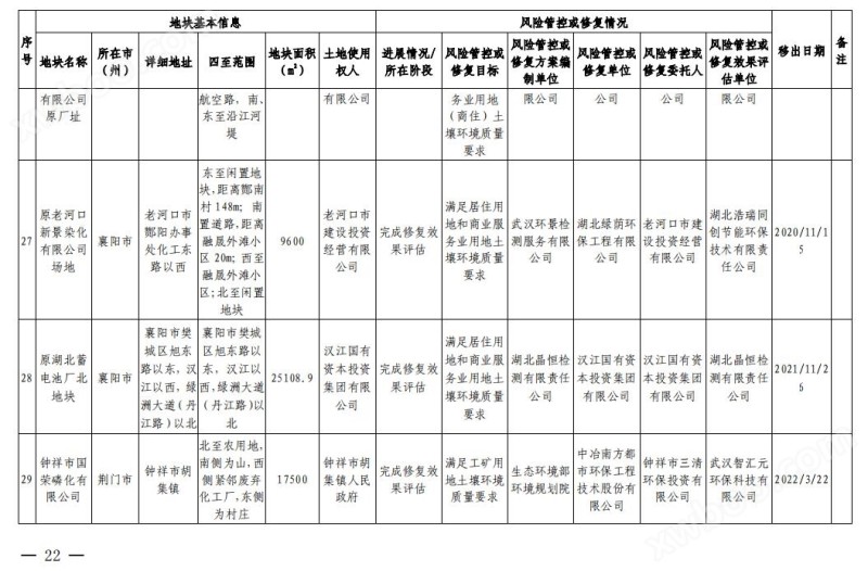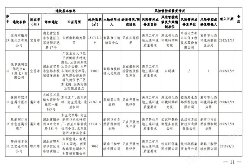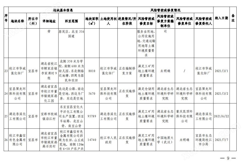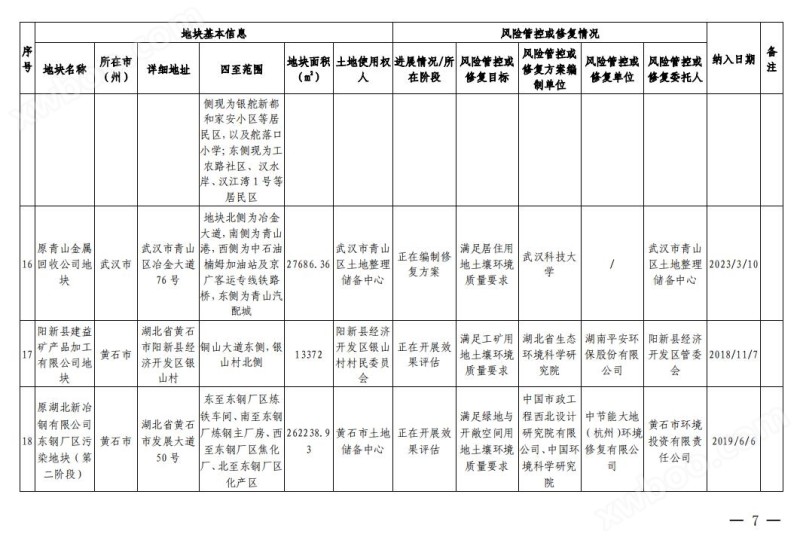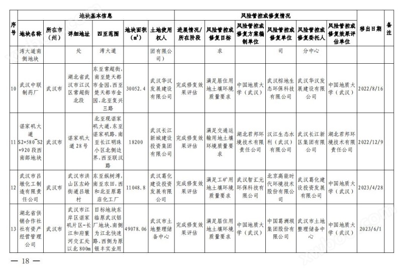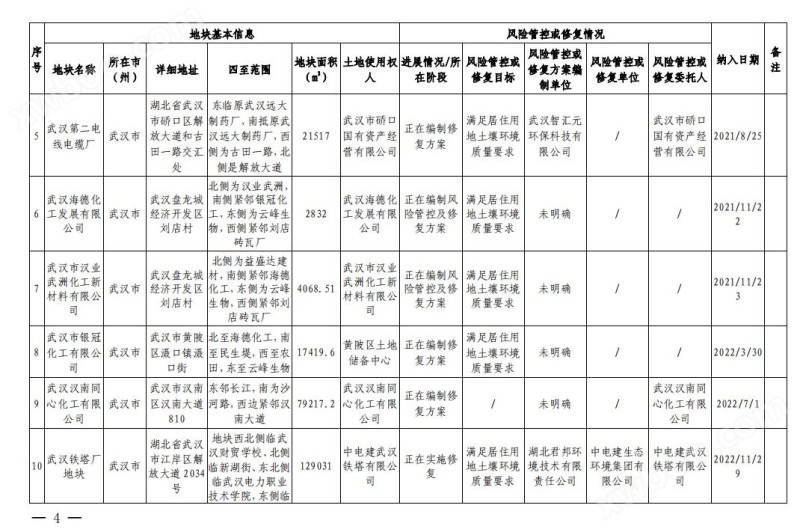 关于发布湖北省建设用地土壤污染风险管控和修复名录(2023年第四批)的通知