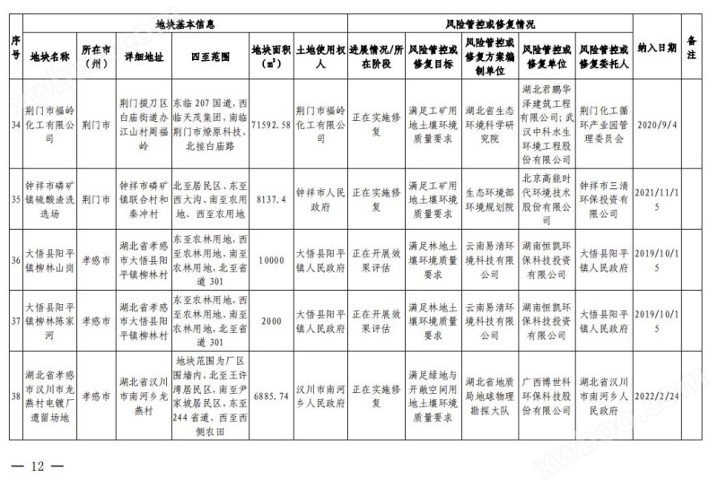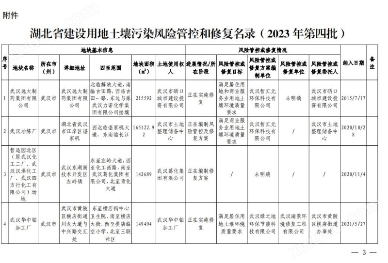 附件:1.湖北省建设用地土壤污染风险管控和修复名录(2023年第四批)