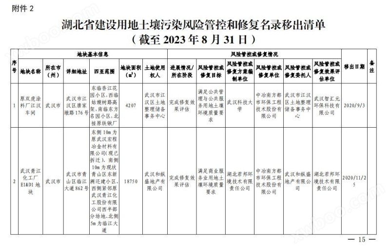 2.湖北省建设用地土壤污染风险管控和修复名录移出清单(截至2023年8月31日)