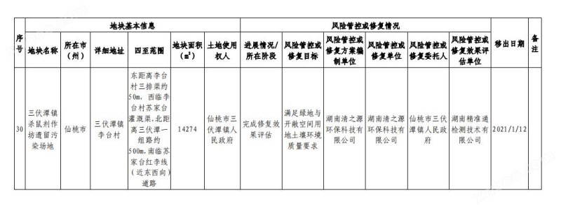 依据《中华人民共和国土壤污染防治法》《污染地块土壤环境管理办法(试行)》《建设用地土壤污染风险管控和修复名录及修复施工相关信息公开工作指南》等有关规定,结合近期全省建设用地土壤污染状况调查、风险评估、风险管控和修复效果评估报告评审情况,省生态环境厅更新形成《湖北省建设用地土壤污染风险管控和修复名录(2023年第四批)》(以下简称《名录》,附件1)和《湖北省建设用地土壤污染风险管控和修复名录移出清单》(截至2023年8月31日)(附件2),现予以发布。