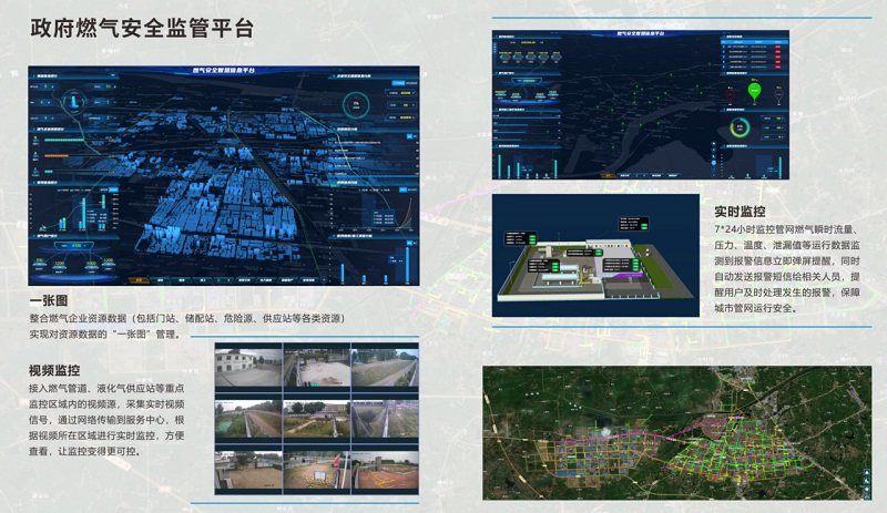 政府燃气安全监管平台依托各类智能感知设备,可对从燃气终端用户到燃气公司、液化气公司、管网,再到场站、长输管线等各燃气场景的使用、存储、输配、生产、经营、服务情况,实时掌握各环节燃气的流量、压力、温度、泄漏值、安检、配送、应急处理等信息,对燃气行业实现全方位的数字化安全监管,保障城市生命线运行安全。