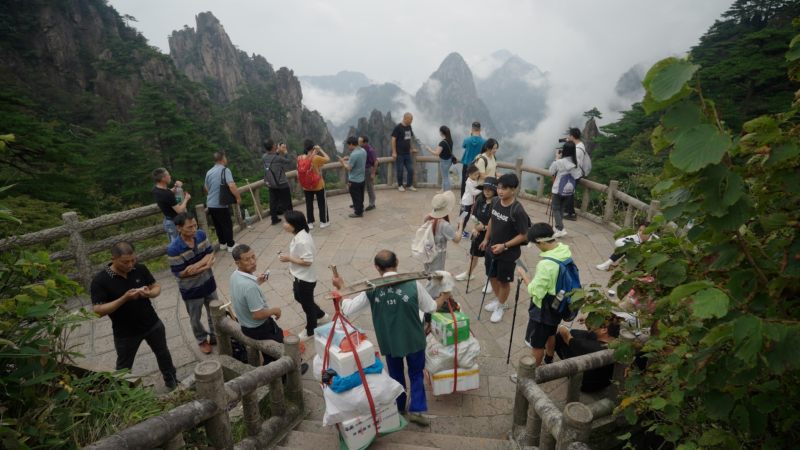 黄山:旅游旺季日均15-20吨物资上山 “缆车+人力”运输仍有较大缺口