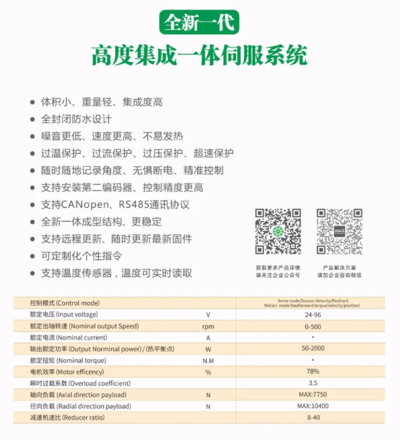 精准控制:搭载inagv®英聚微伺服驱动控制器强大的FOC矢量控制算法,驱动轮在任意转速下均可实现精确控制