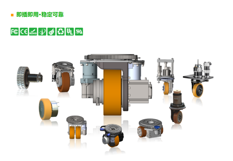 我公司是国内较早专业从事AGV/AMR舵轮、电驱动轮总成研发与生产的企业,主要产品包括卧式驱动轮、卧式舵轮、立式驱动轮、立式舵轮、重载AGV专用曲轴脚轮、高精密型脚轮万向轮。电驱动轮及舵轮功率范围0.2KW~50KW、轮径范围150mm~600mm、载重范围300KG~20000KG,几乎涵盖了工业领域各类电驱动移动设备的需求,客户选型游刃有余,并且还可以满足客户个性化的定制需求,为客户打造专属化产品。