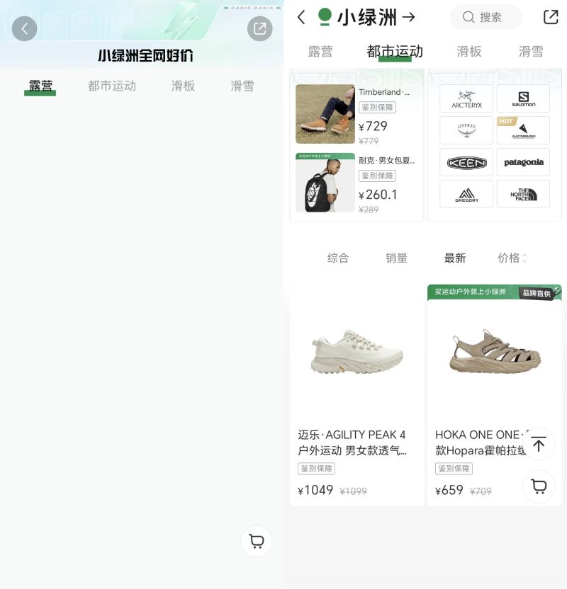 回到2022年初,小红书取消与淘宝商品的外部链接后不久,推出了全新的自营电商“小绿洲”。初期账号产品方向与“福利社”相似,主营美妆护肤、时尚家居、香氛等。