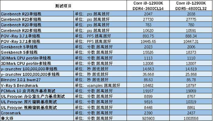 酷睿i9-12900K搭配DDR4与DDR5,总体差距并不是很大;